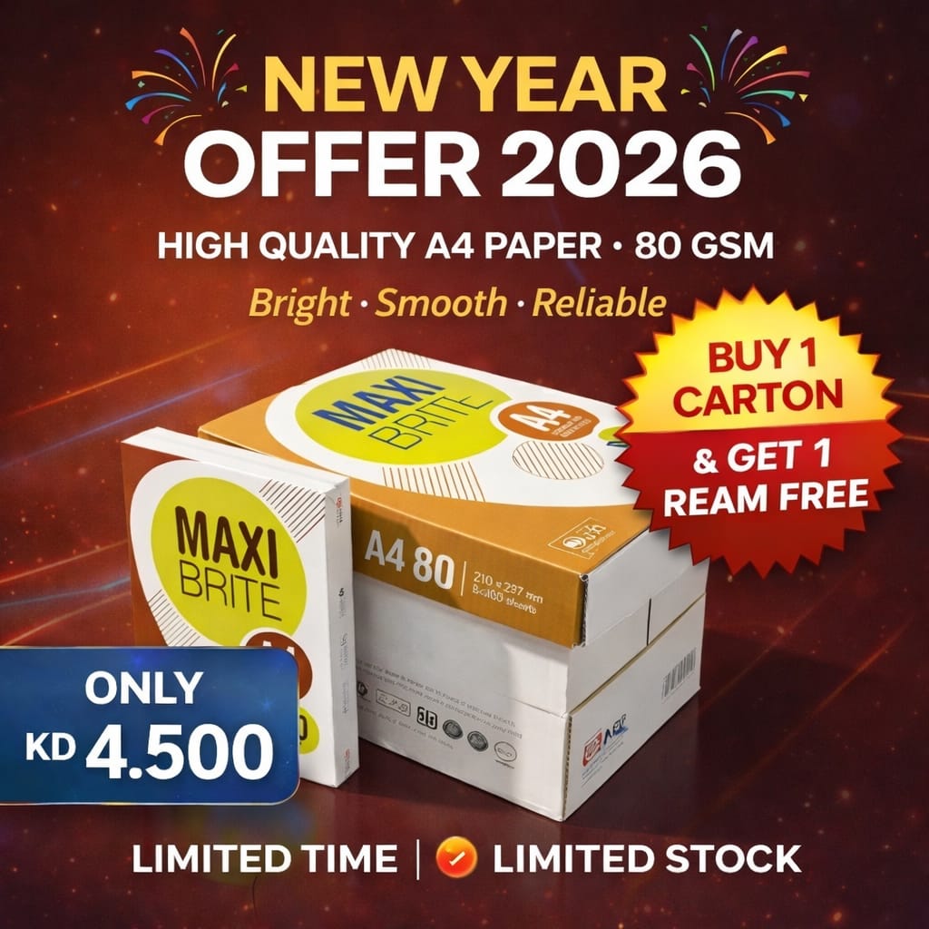 Maxi Brite 80 GSM Photocopy A4 Paper Carton with 1 Ream FREE