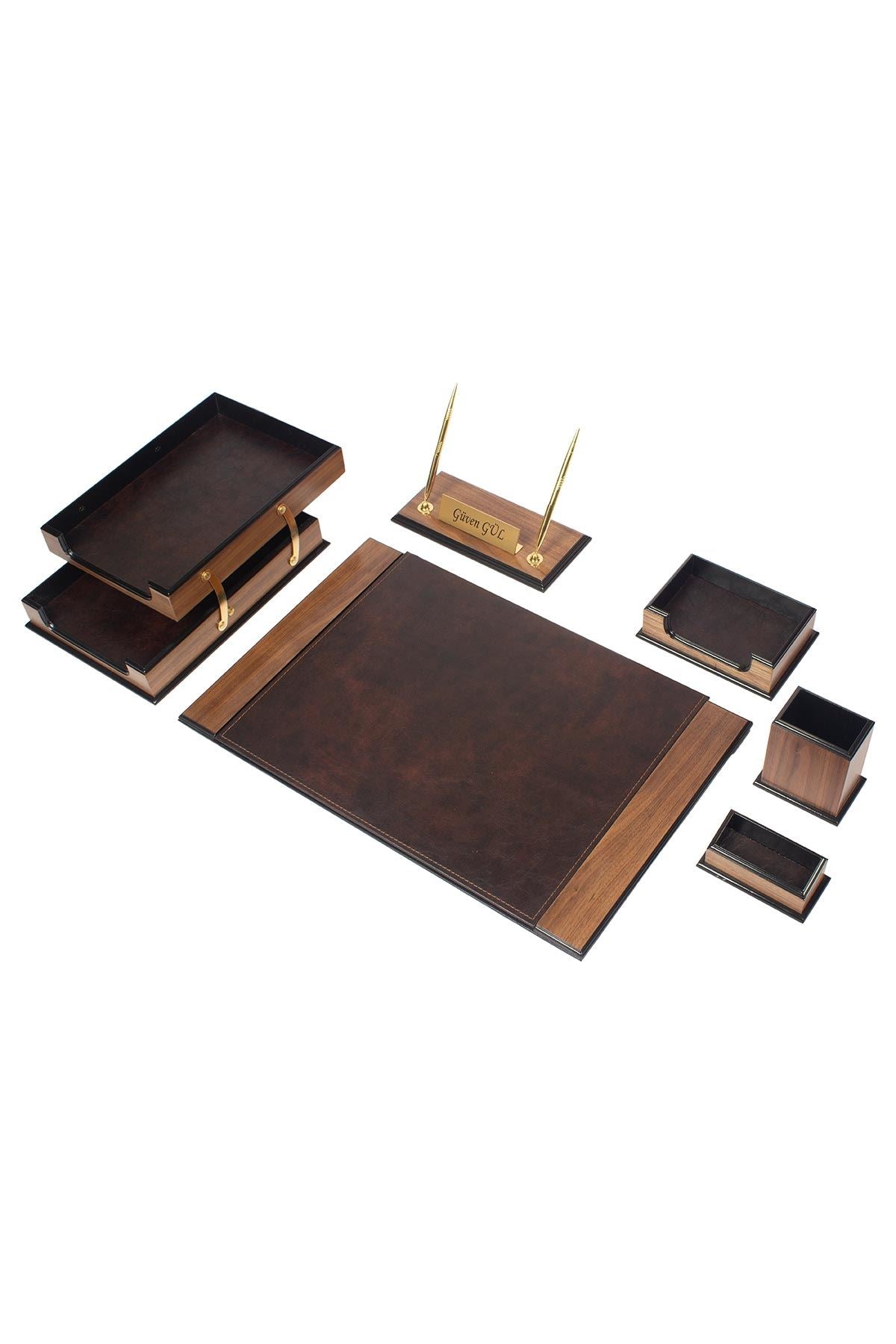 مجموعة سطح المكتب الأصلية باللون البني - مجموعة من 8 قطع