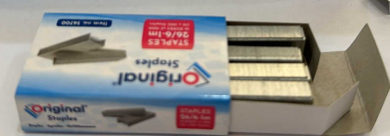 دبابيس الدباسة للدباسة القياسية. المقاس: 26/6 (المقاس القياسي) دبابيس الدبابيس الأصلية® 20 صندوقًا × 1000 قطعة صنع في...Regular price KWD1.500Sale price KWD1.500 Regular priceUnit price per -