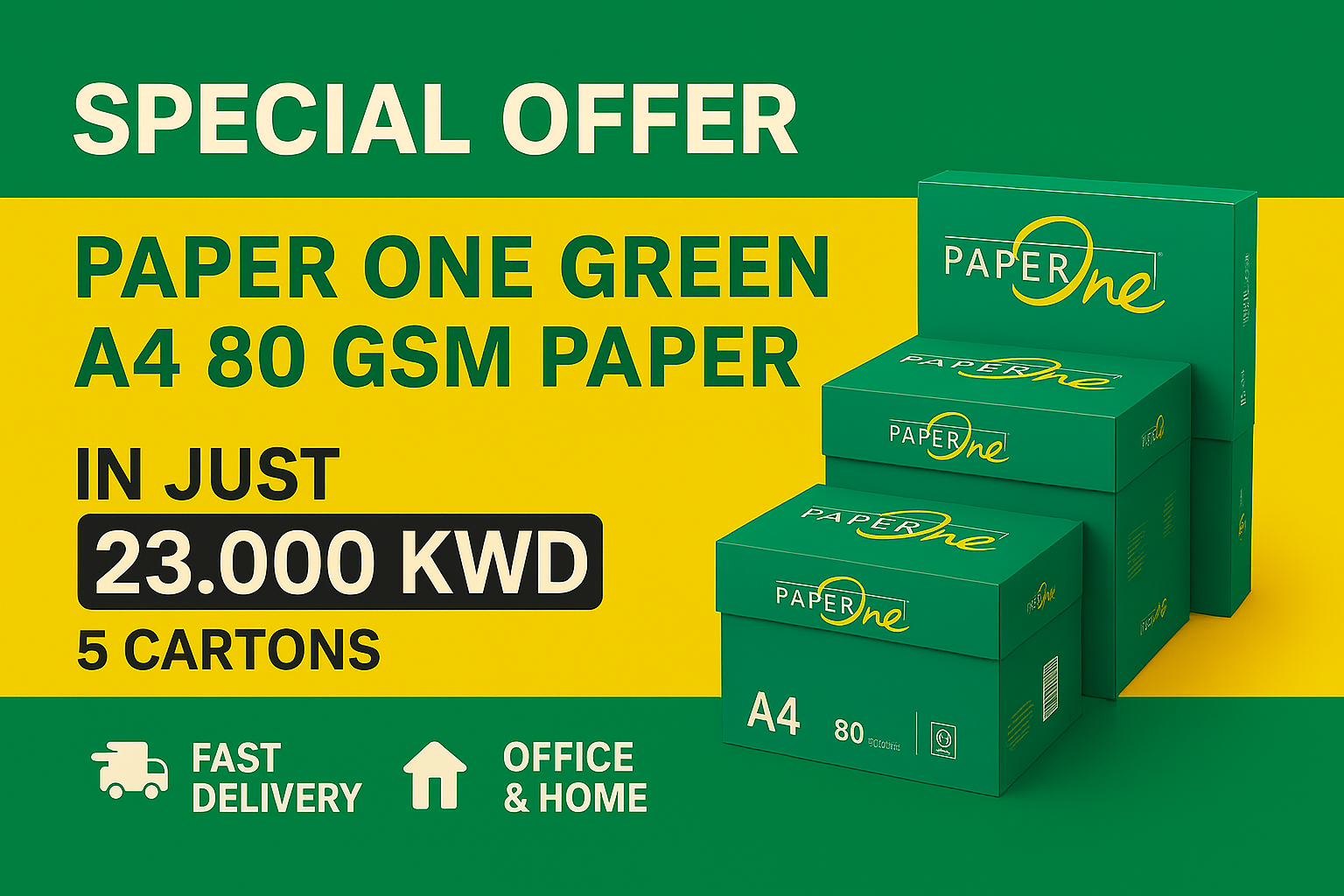Special Offer – Limited Time Only!Get Paper One Green A4 Copy Paper (80 GSM) at an unbeatable price....Regular price KWD23.000Sale price KWD23.000 Regular priceUnit price per -