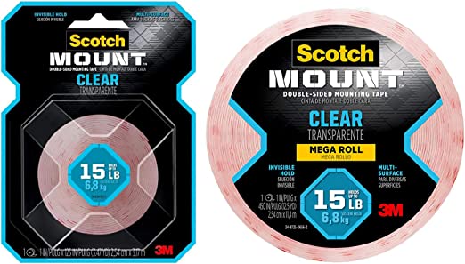 3M Scotch-Mount ™ شريط لاصق شفاف مزدوج الجوانب 410H ، 1 بوصة × 60 بوصة (2.54 سم × 1.52 م)