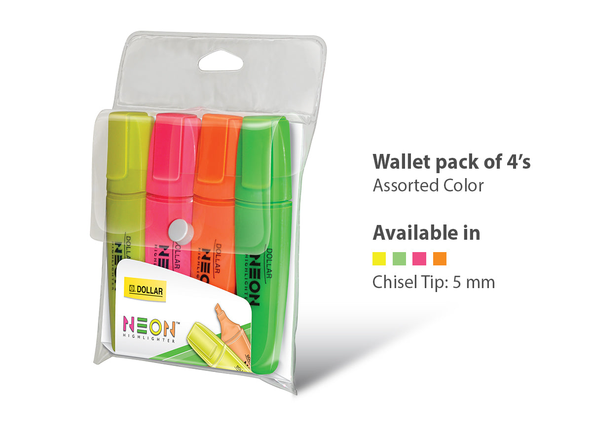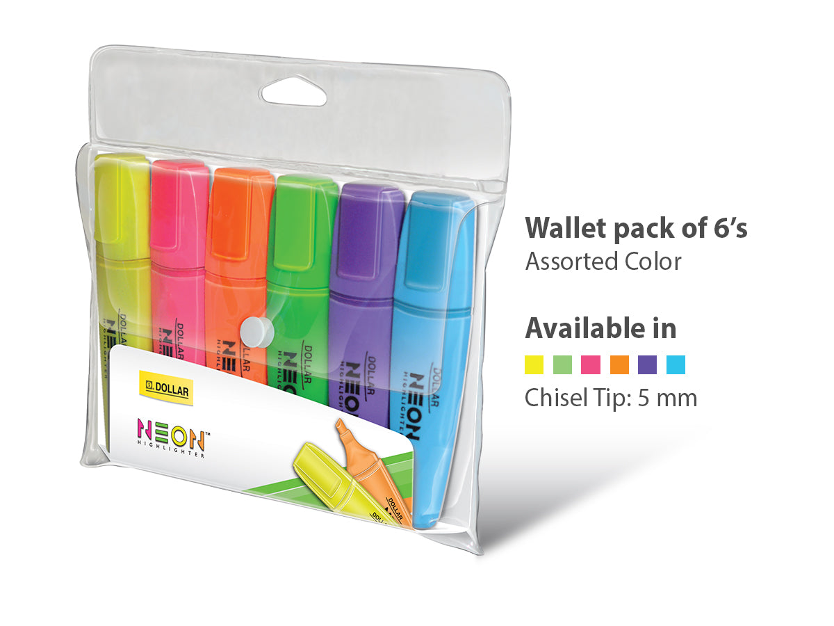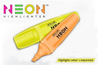Dollar Neon™ Highlighter HL-625 Available in Pack of 4's, 6's, 15's & 30's Assorted Color