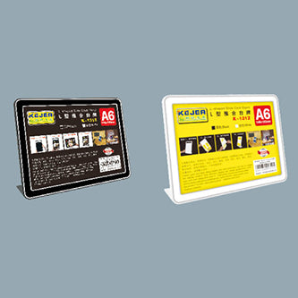 Name: A6 Table Display Stand For Restaurant Horizontal 148x105mm Material: PVC Page + PS Base Color: Transparent &...Regular price KWD1.750Sale price KWD1.750 Regular priceUnit price per -